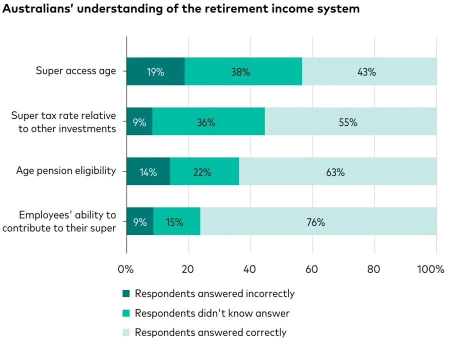 Yet, Vanguard’s 2024 How Australia Retires research shows a high percentage of Australians don’t know the basics, let alone the countless, more complex, super, pension, tax and other regulations that apply to the nation’s almost $4 trillion retirement system.
